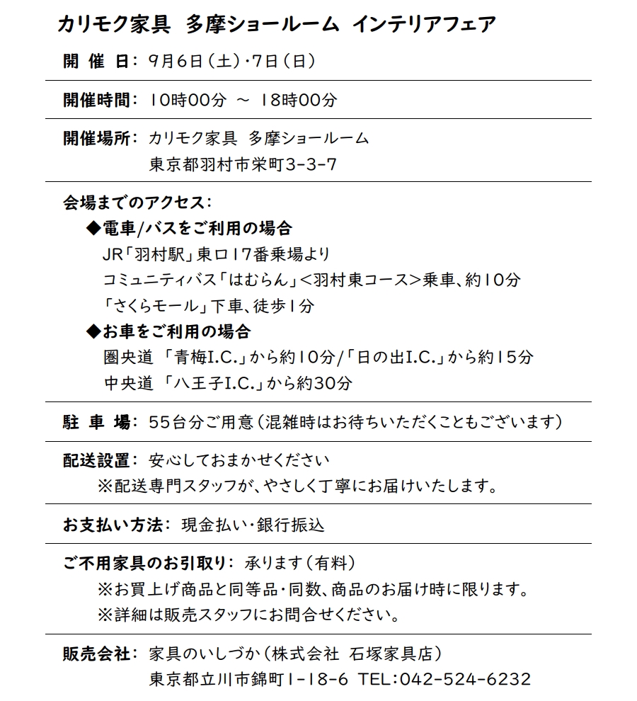 9月6日・7日「カリモク家具 インテリアフェア」