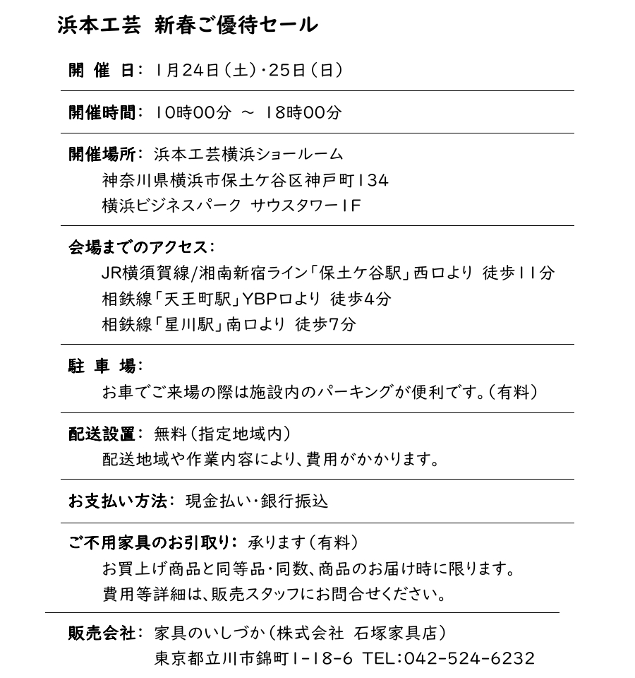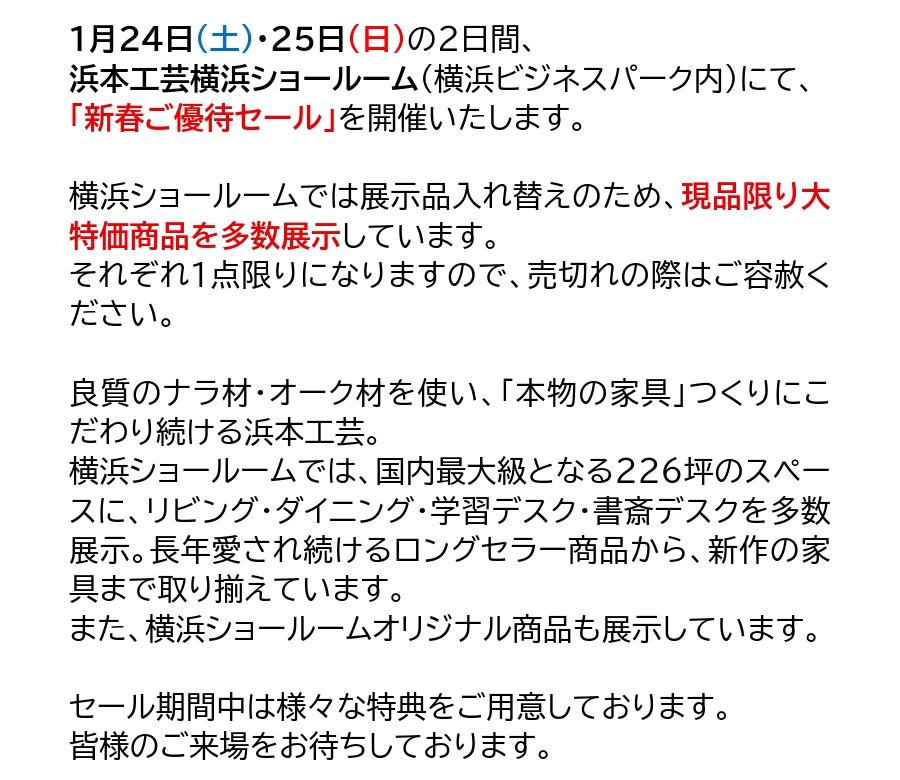 1月24日・25日「浜本工芸 新春ご優待セール」