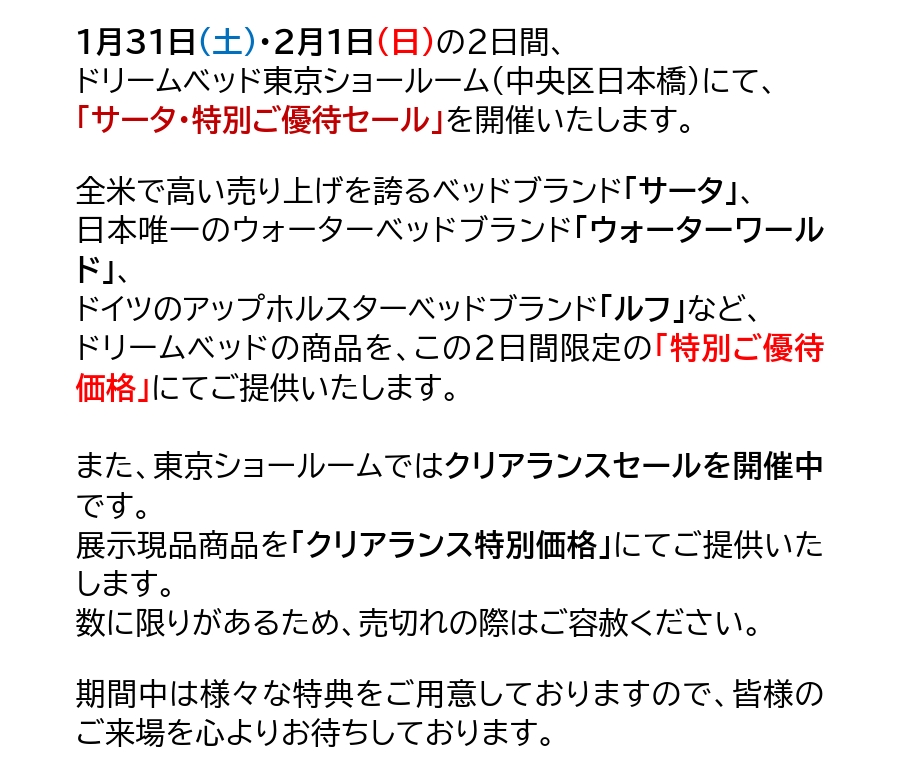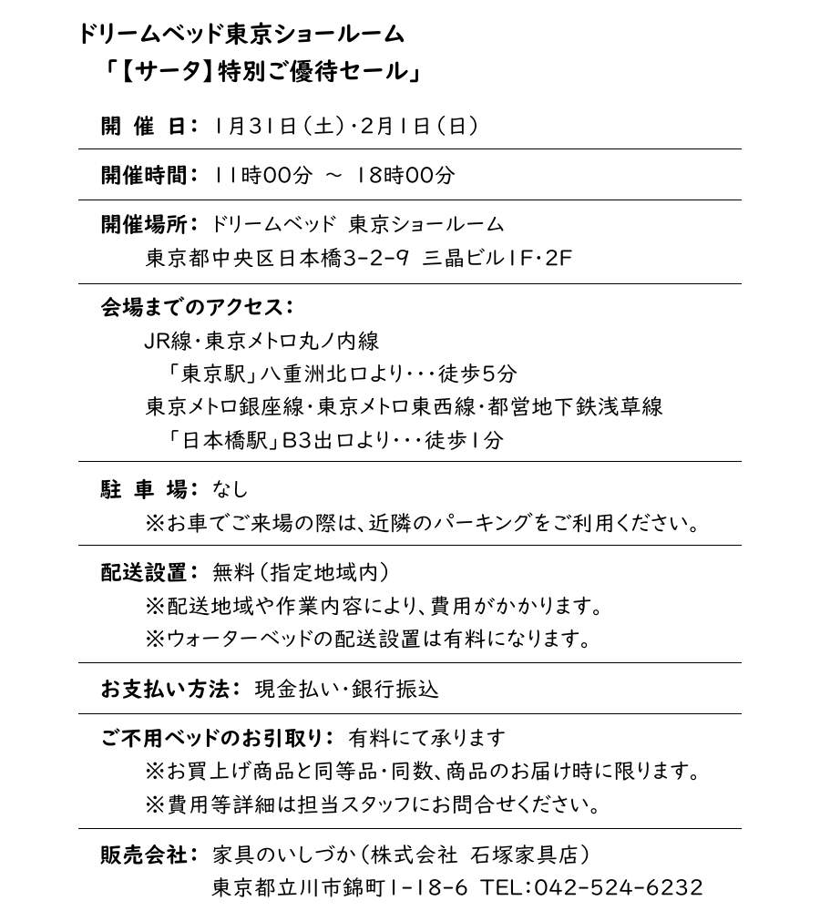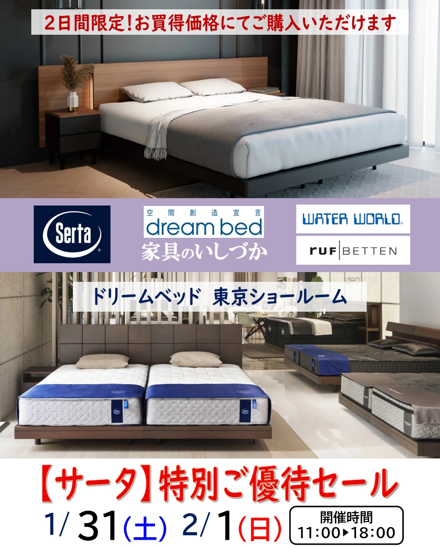 1月31日・2月1日「ドリームベッド【サータ】特別ご優待セール」