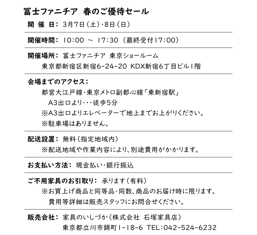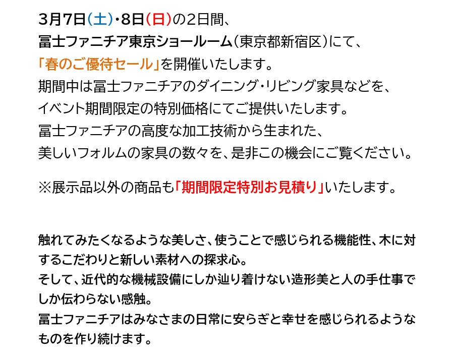 3月7日・8日「冨士ファニチア 春のご優待セール」