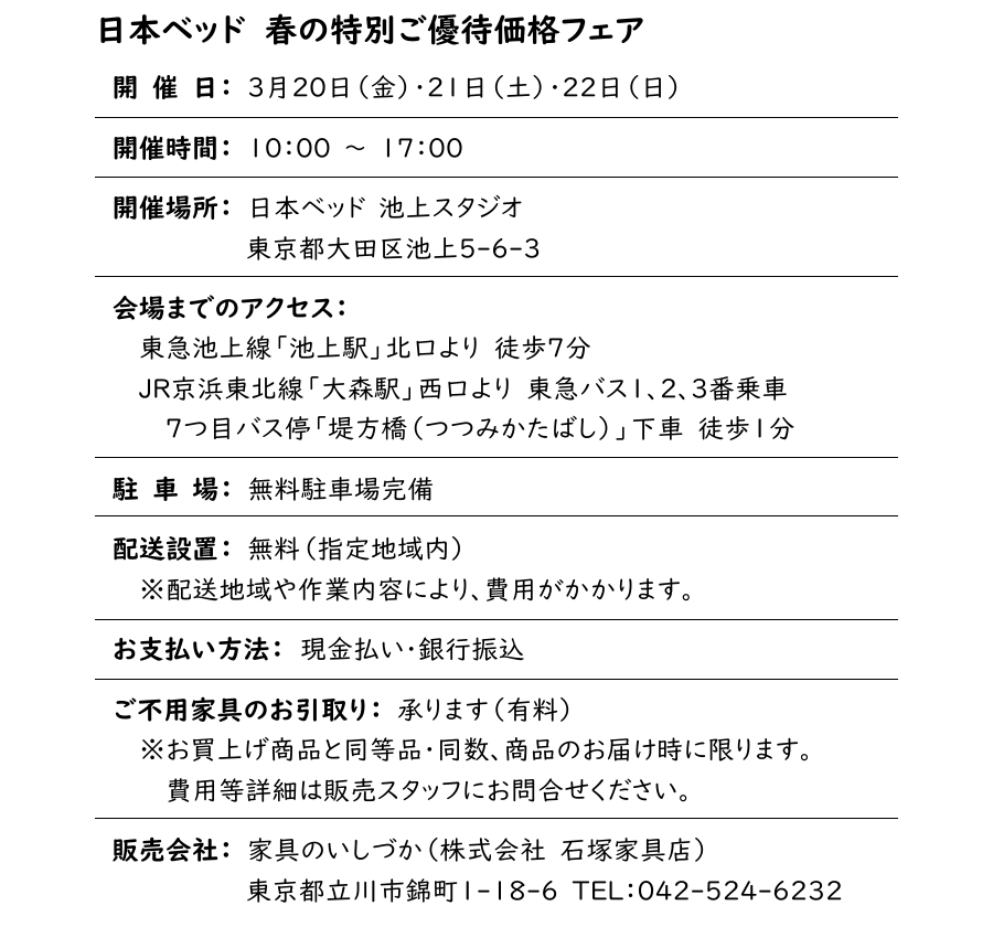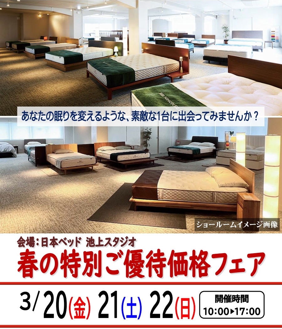 3月20日~22日「日本ベッド 春の特別ご優待価格フェア」