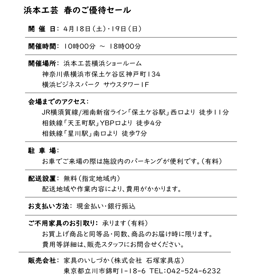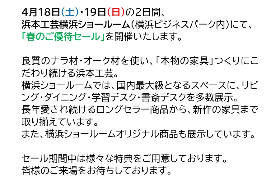 4月18日・19日「浜本工芸 春のご優待セール」