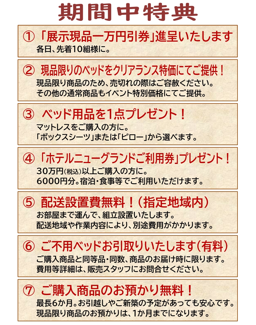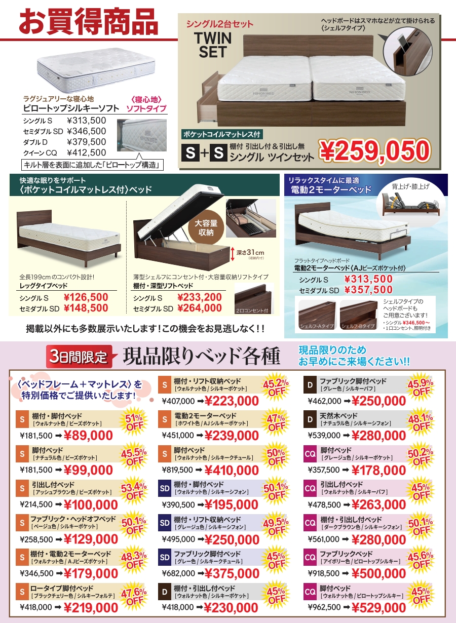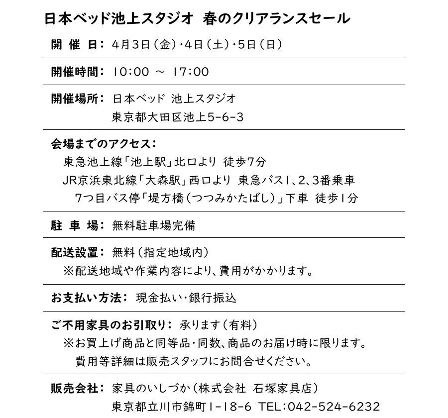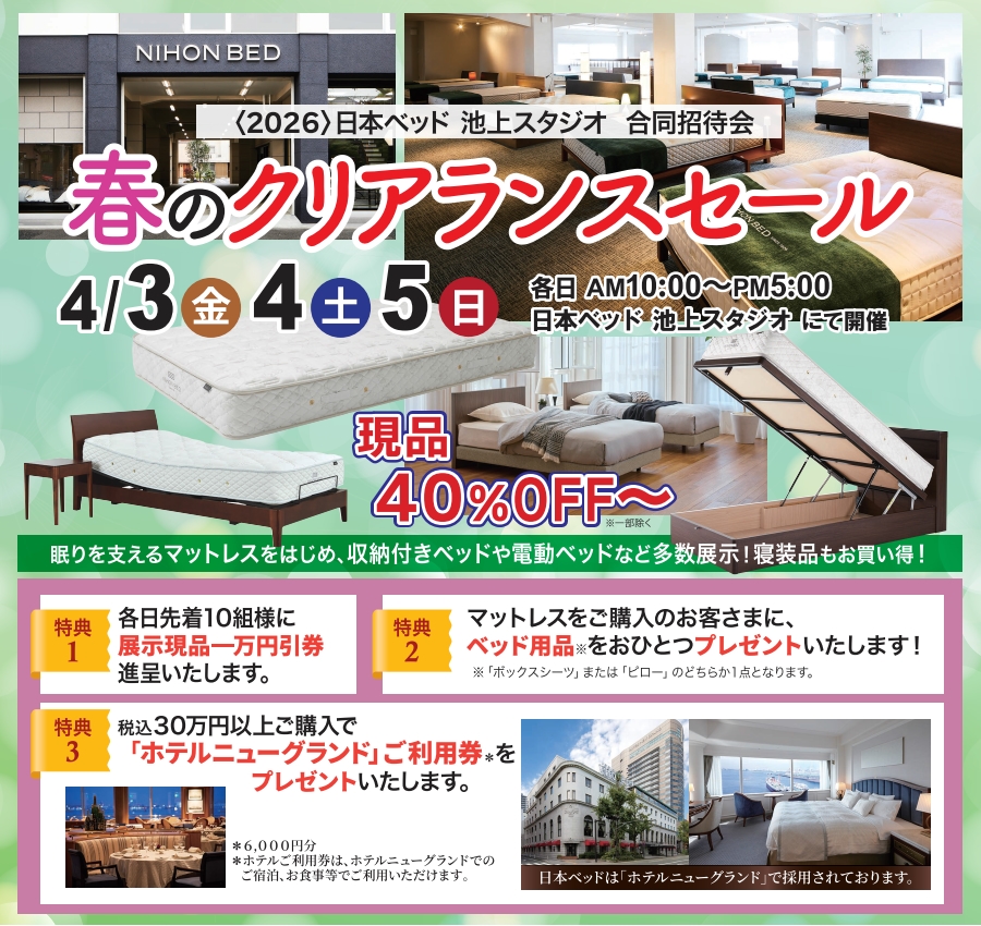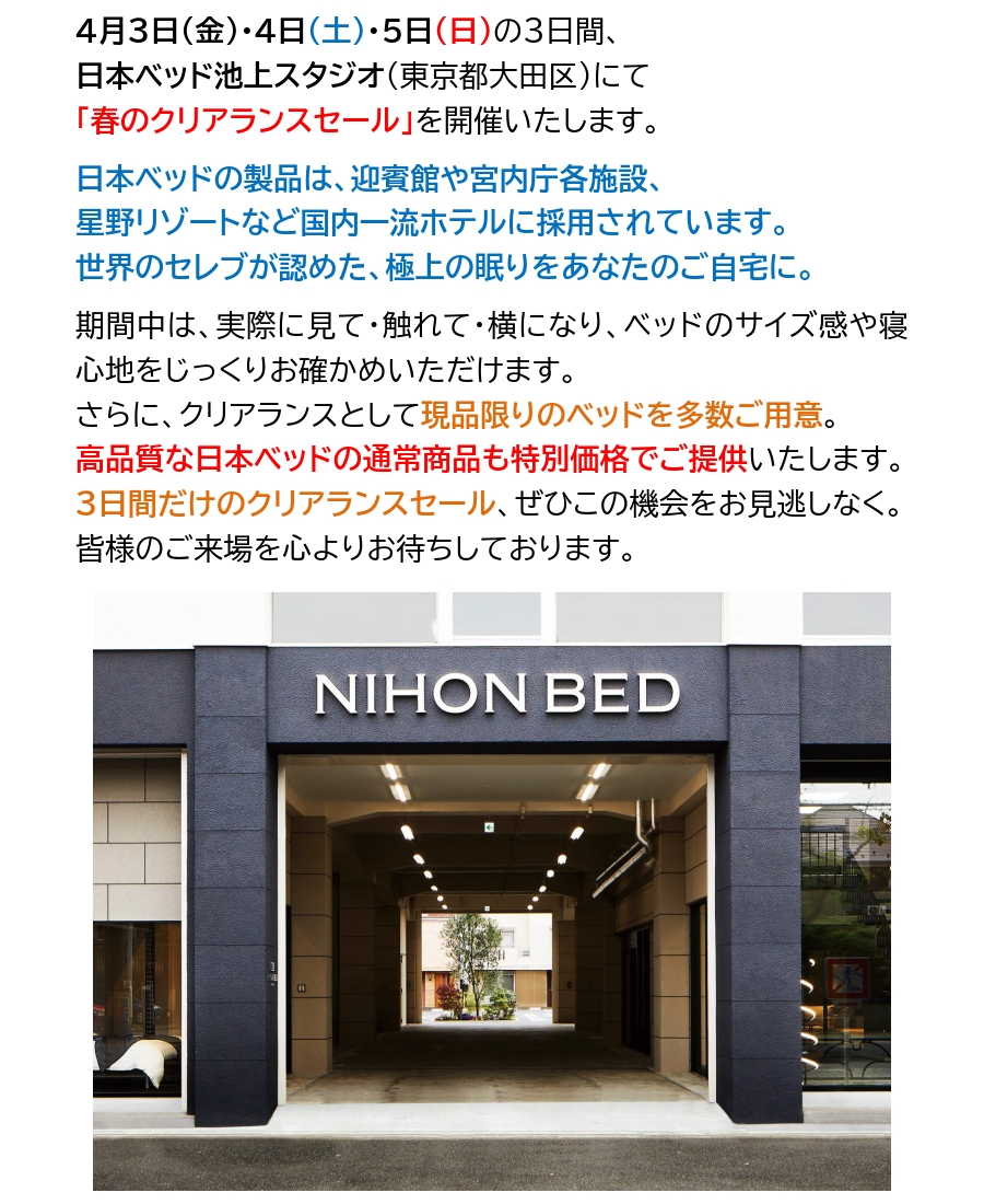 4月3日~5日「日本ベッド 春のクリアランスセール」