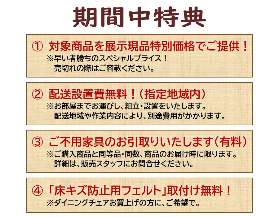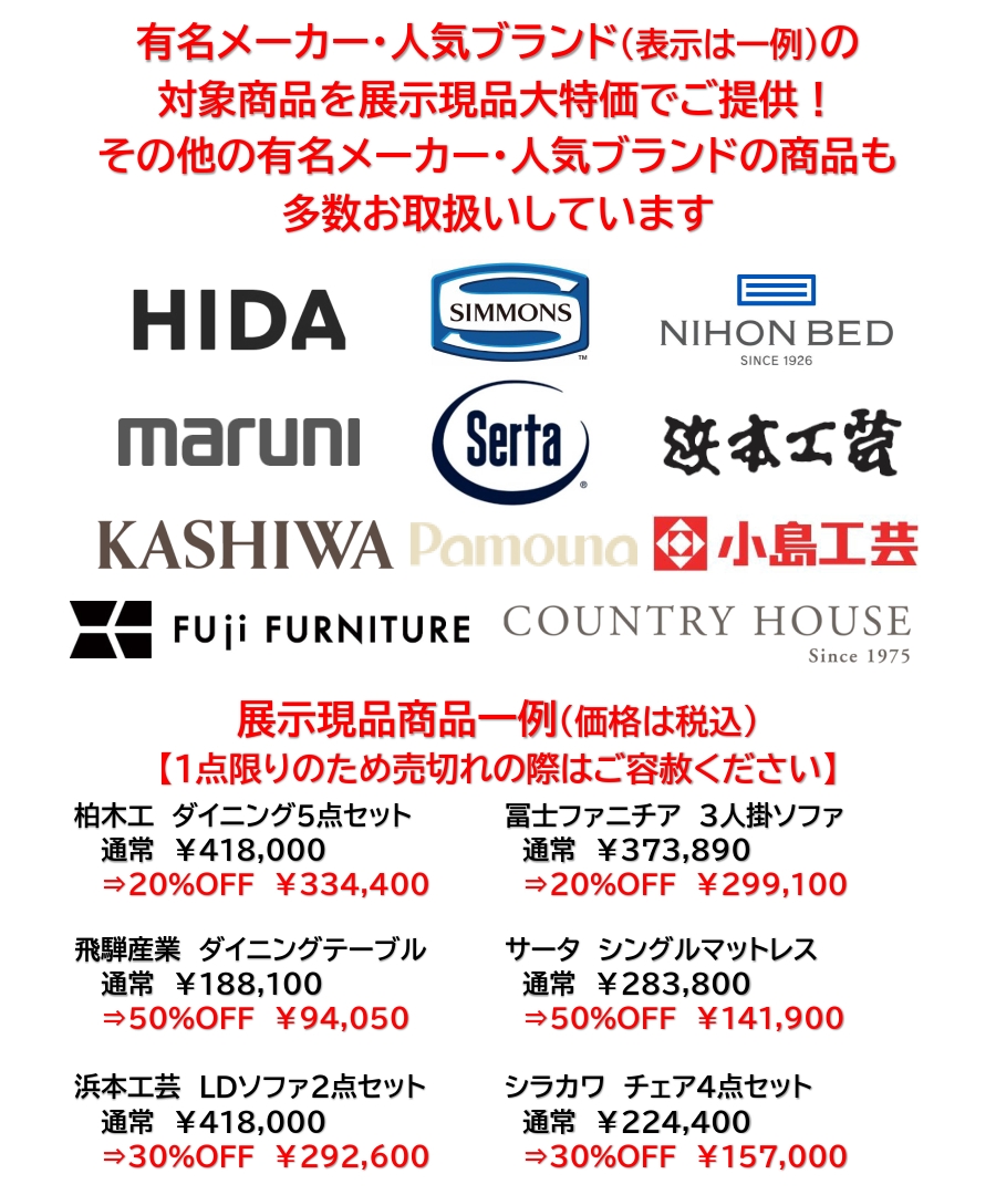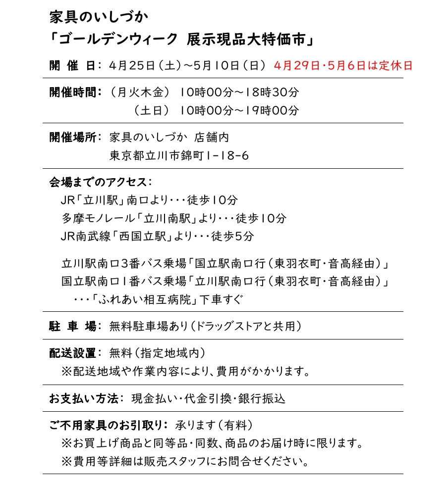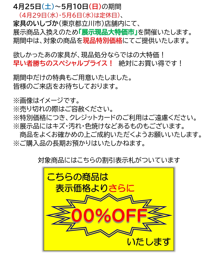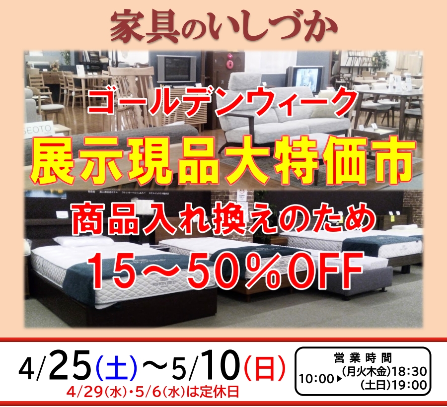 4月25日~5月10日「ゴールデンウィーク 展示現品大特価市」