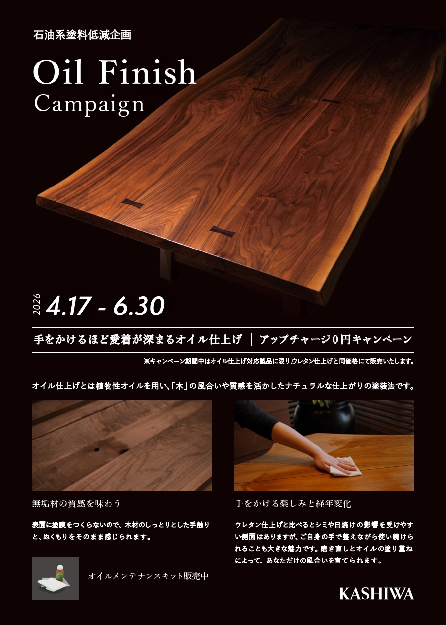 「柏木工 オイル仕上げ無料キャンペーン」を実施いたします。